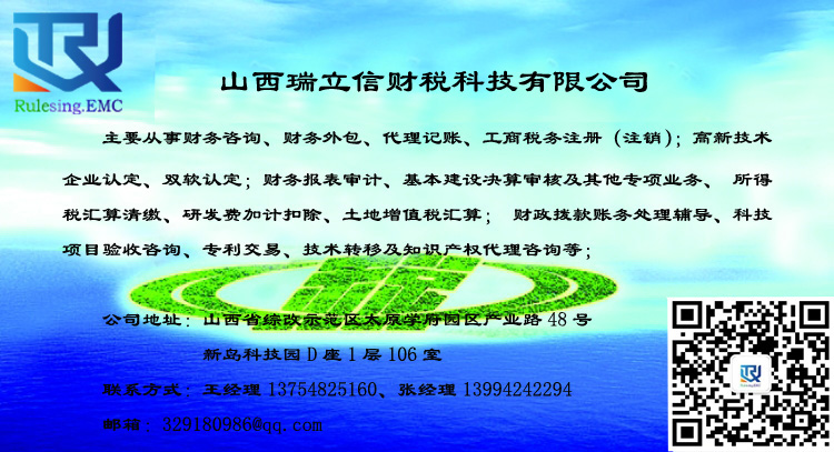 山西瑞立信財稅科技有限公司是以會計師事務(wù)所、稅務(wù)師事務(wù)所及知識產(chǎn)權(quán)代理公司等專業(yè)服務(wù)機(jī)構(gòu)作為依托背景,擁有多名注冊會計師、注冊稅務(wù)師、會計師、助理會計師等專業(yè)的財稅人員,擁有可靠而廣泛的社會資源,能保證客戶享受到安全、放心、可靠、完善的財稅服務(wù)。